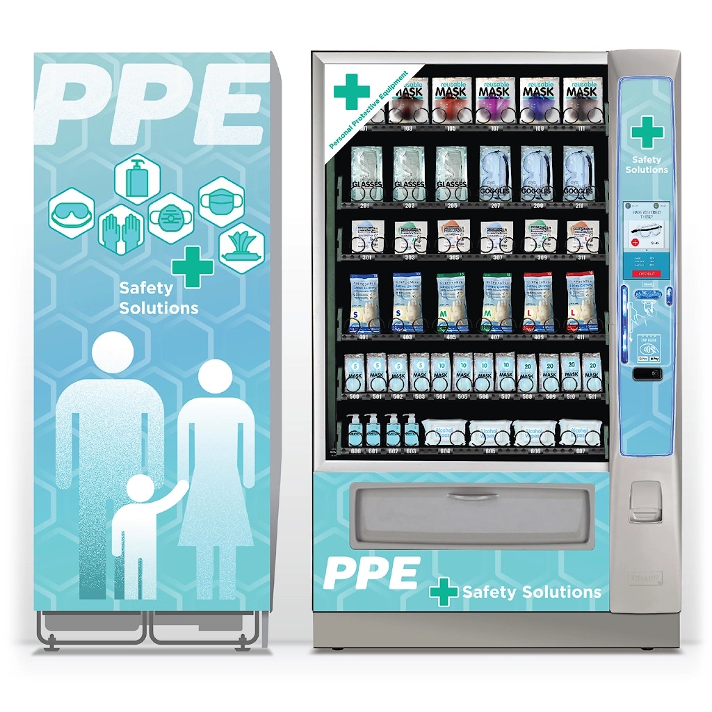 Crane Merchandising needed a complete brand package for a PPE (personal protection equipment) vending machine. Development needed to be prompt, given the broad and intense presence of Covid-19 and the likelihood that competing manufacturers were developing similar machines.
