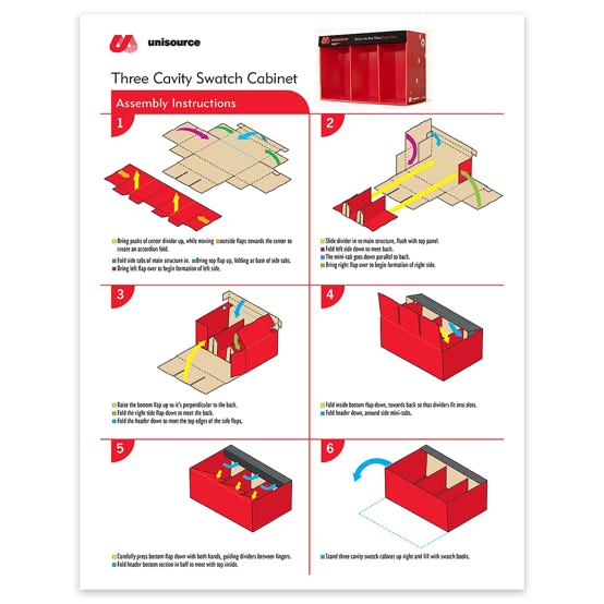 Deliver product experience or guide the reader through the required steps to achieve the desired result in a single sheet for print and digital distribution.